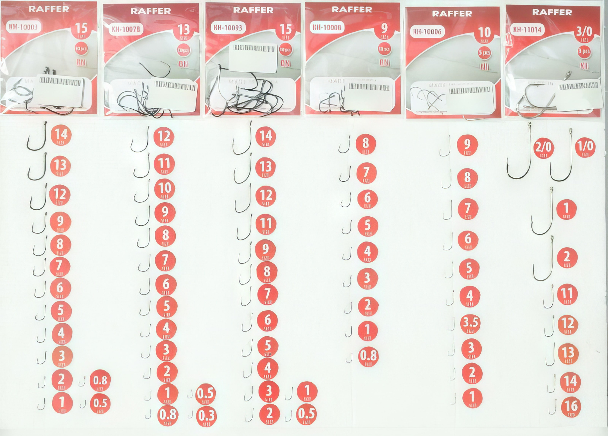 Размеры крючков