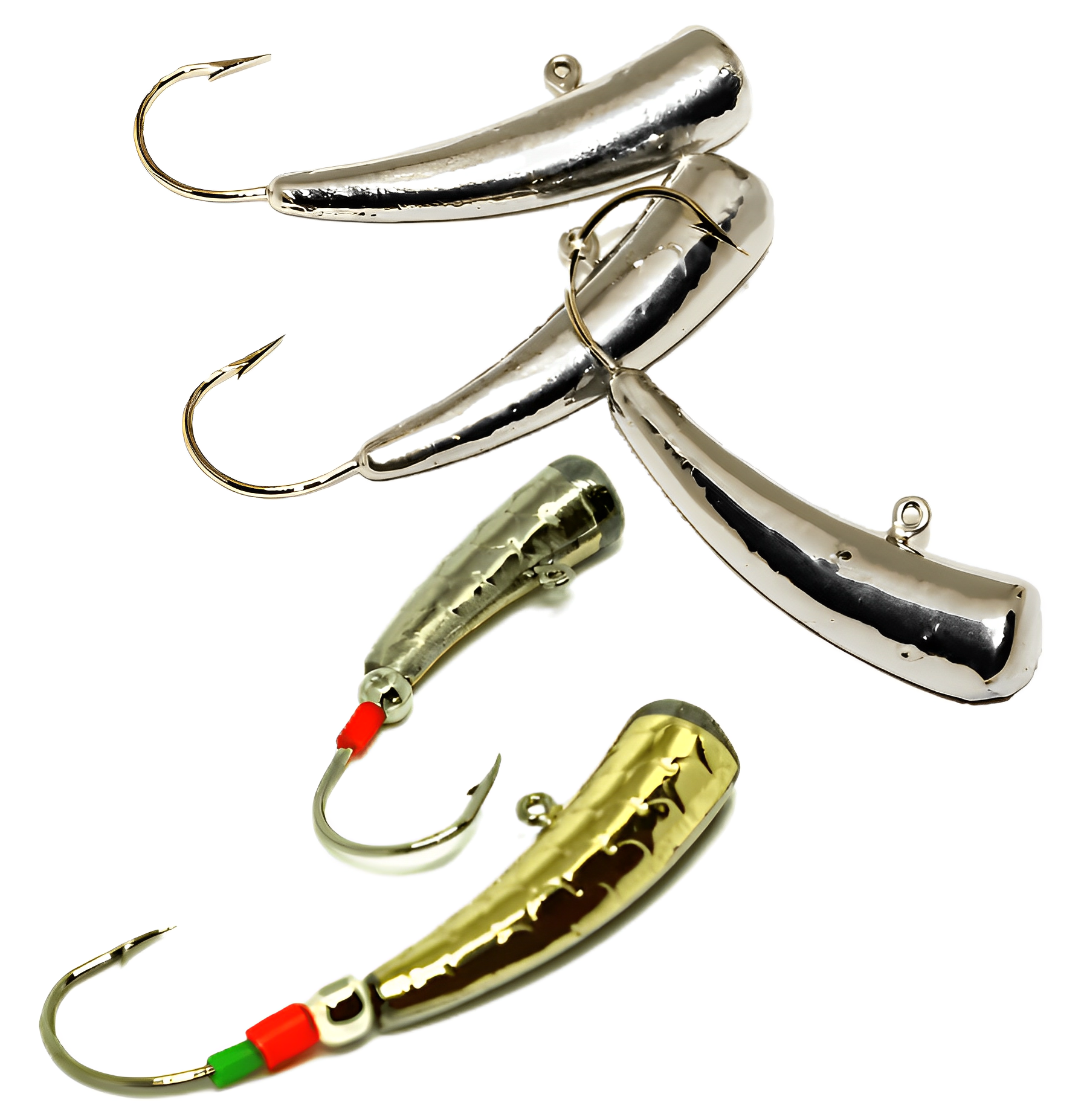 •  Средние — эти мормышки выплавляются из олова или вырезаются из цветного листового металла, например, латуни, с наплавлением свинца. Они подходят для ловли на небольшой глубине и могут быть легко изготовлены своими руками.