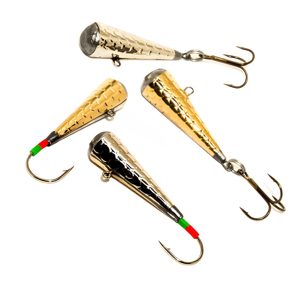 •  Конус — название определяет форму этой приманки. Крючок торчит из вершины фигуры.