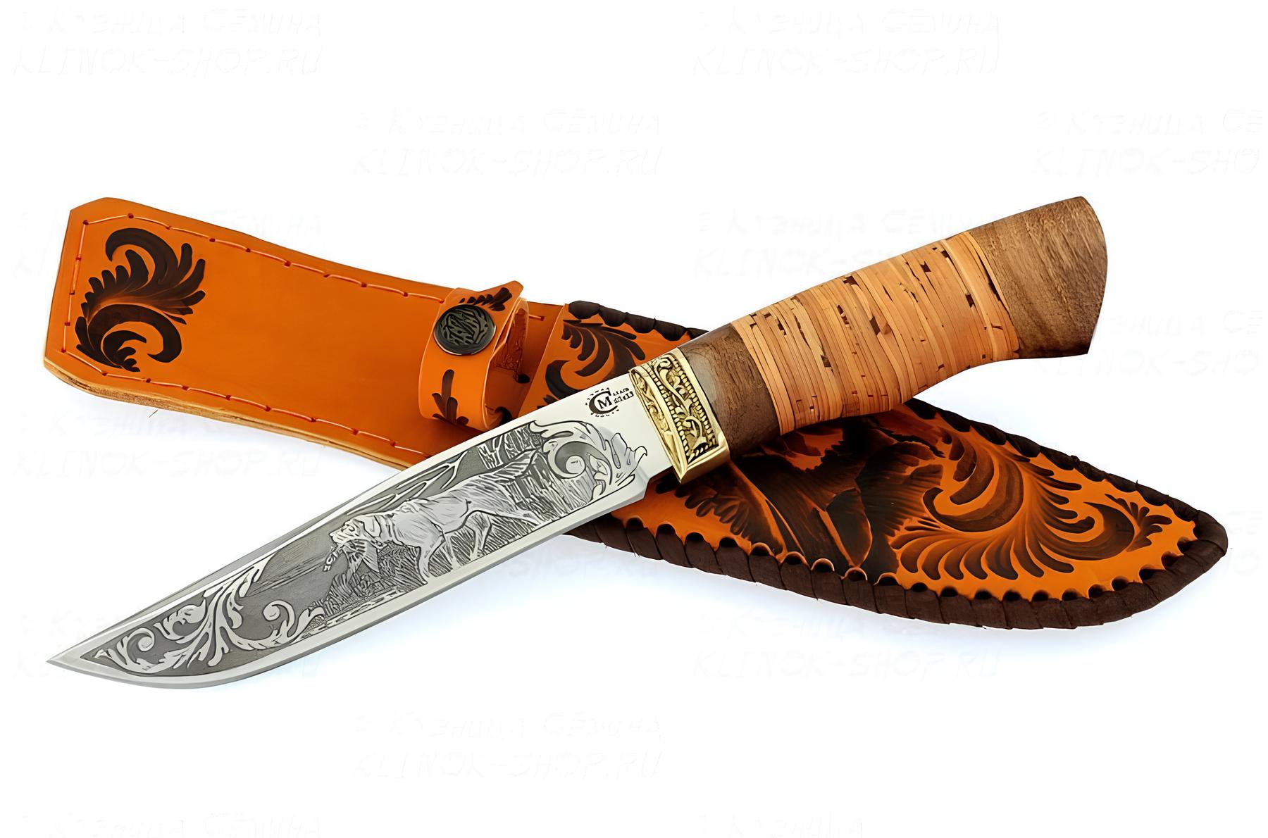 Нож Путник ст.65х13, береста, литье, гравировка