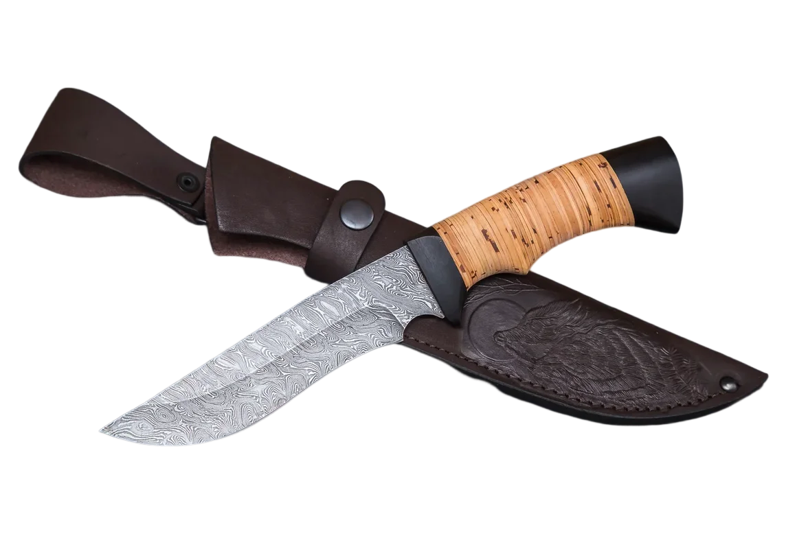 *Нож Судак из дамасской стали, береста, граб, дюраль