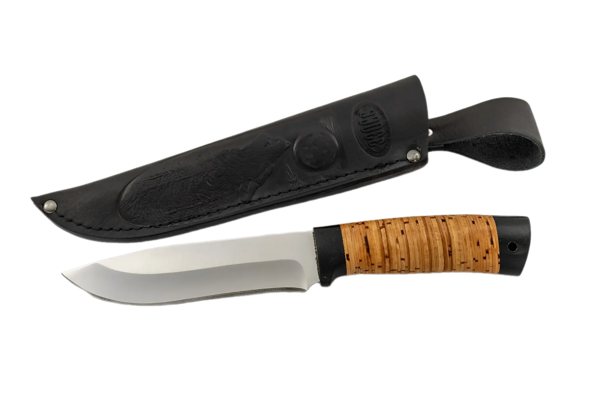 Нож туристич. «Александр II» Н6, ст.ЭИ-107, текстолит, береста